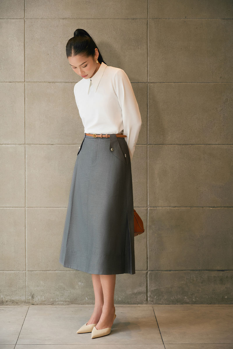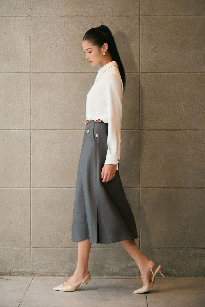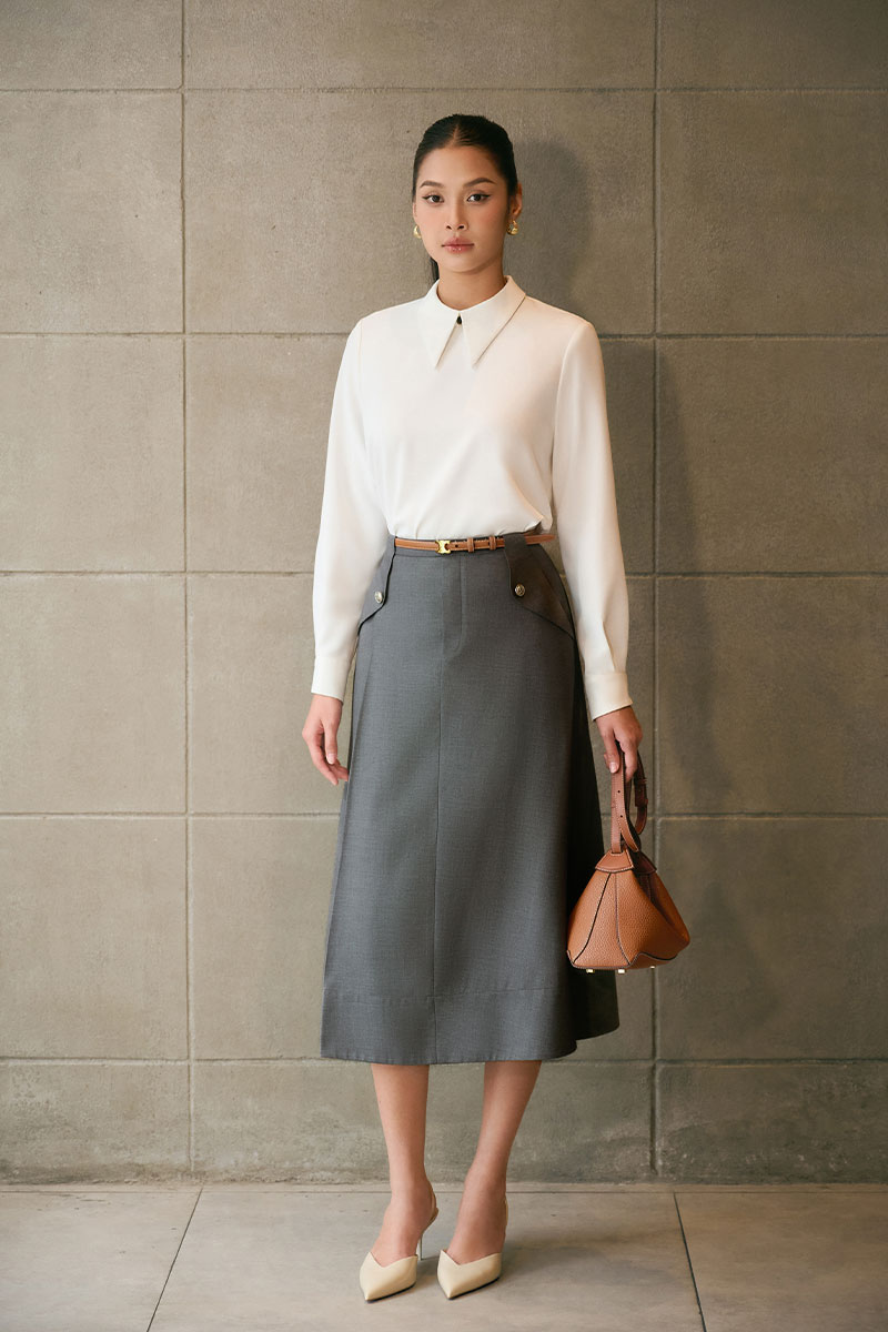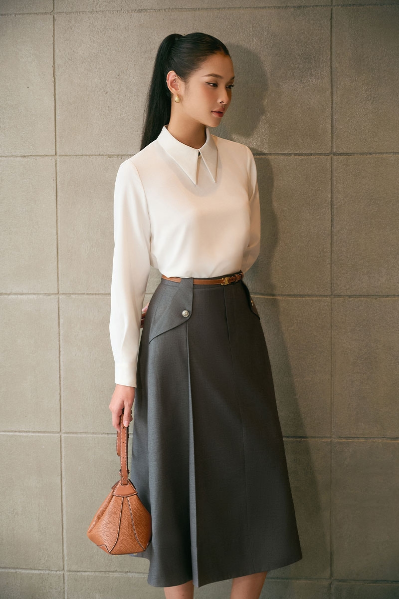 Sơ mi DT cổ nhọn măng sét cách điệu