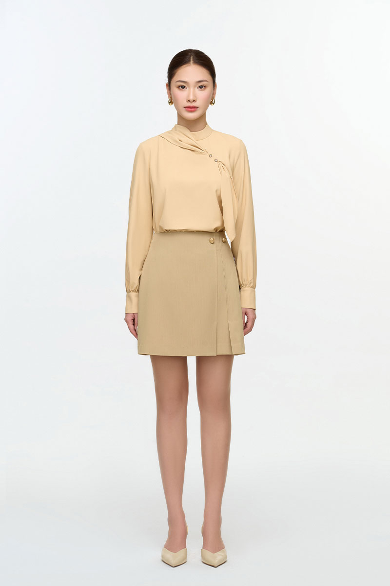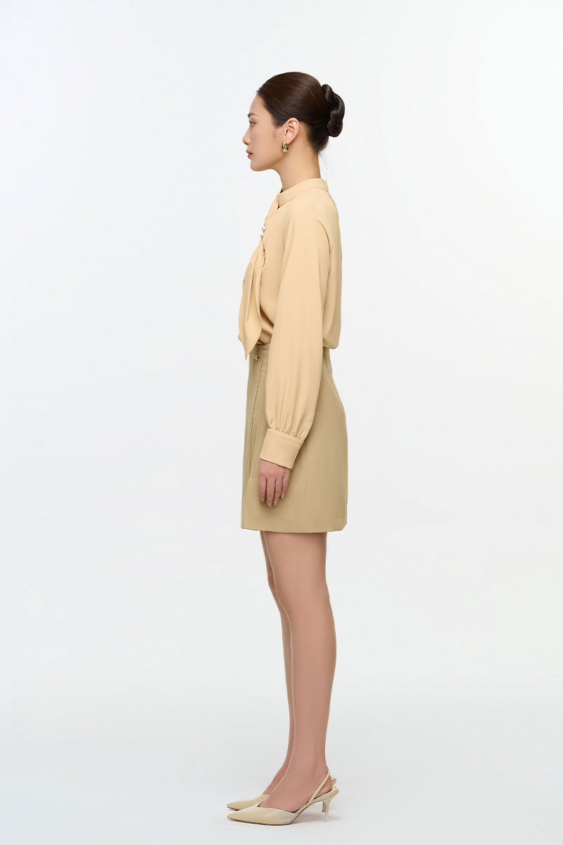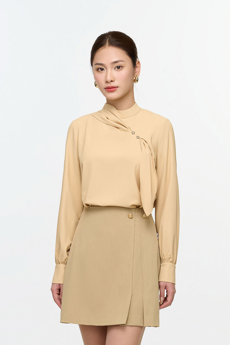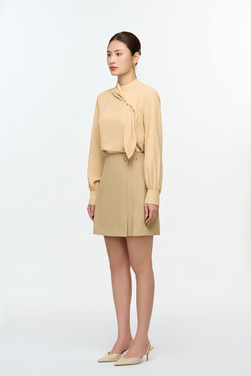 Sơ mi DT cổ tàu luồn nơ ngực đính cúc