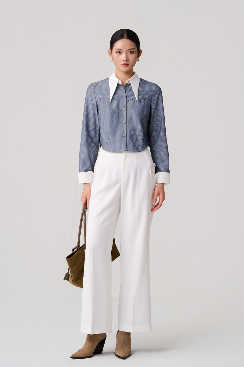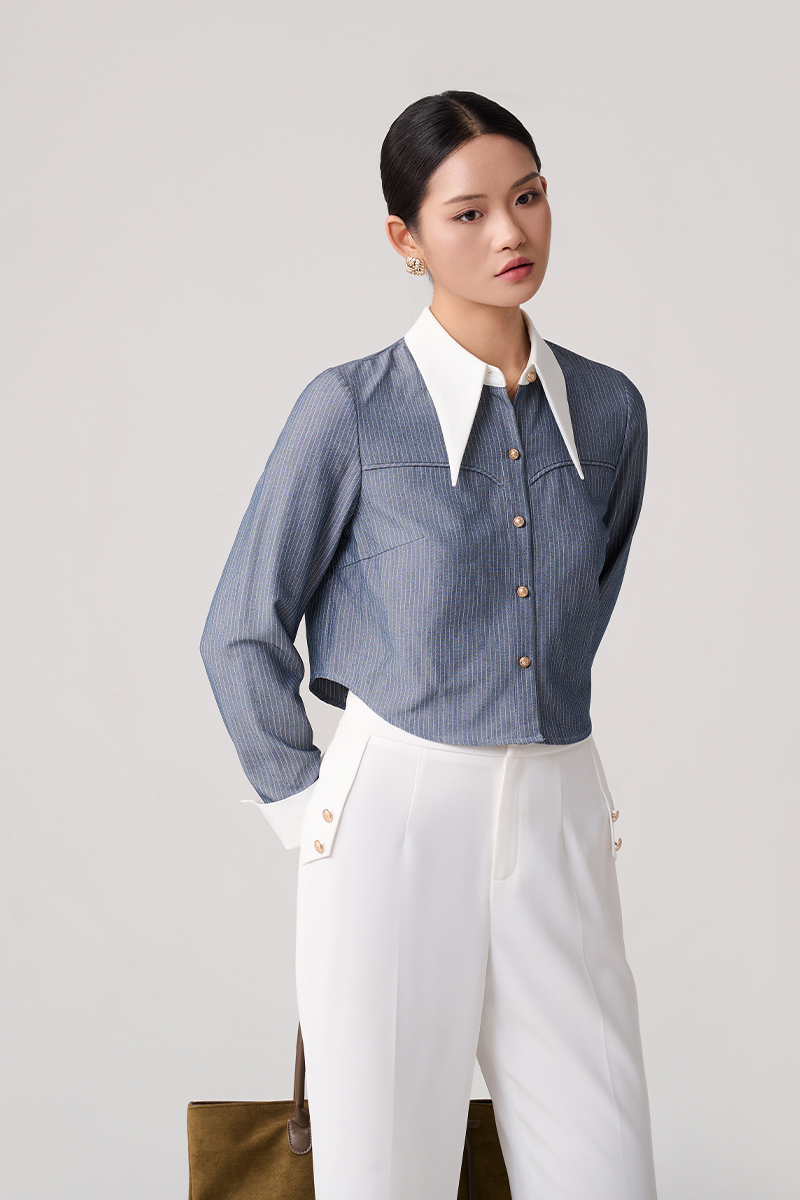 Sơ mi DT croptop kẻ can ngực, cổ phối