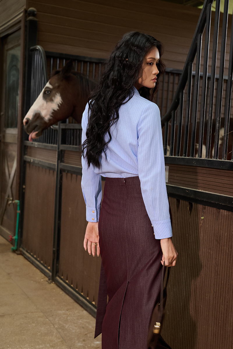 Sơ mi DT kẻ bọc viền nẹp cổ