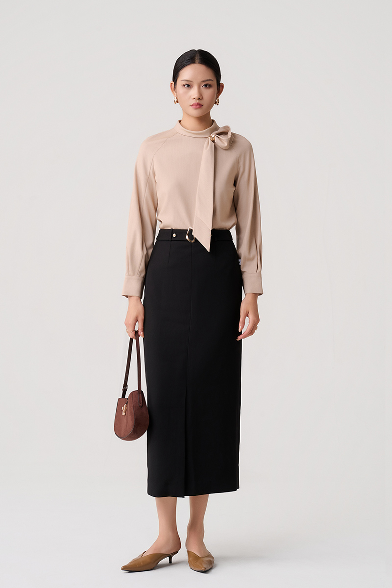 Sơ mi DT tay raglan cổ đính nơ