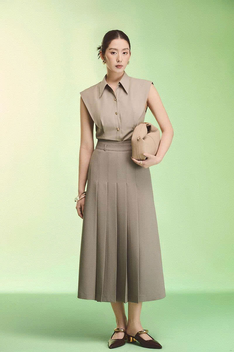 phong cách trendy thanh lịch, phong cách hợp thời, phong cách thời thượng, phong cách hợp xu hướng. phối đẹp với chân váy nhã nhặn.