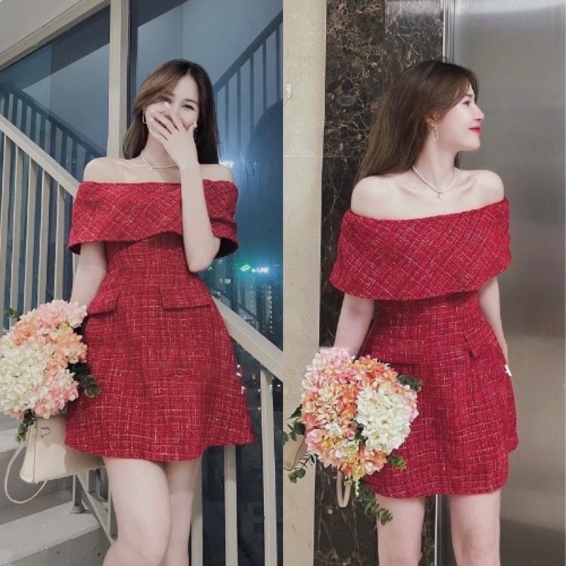 Một kiểu thiết kế khác của set váy áo dạ tweed mà bạn nên thử là set váy áo dạ tweed trễ vai. Đây là một kiểu thiết kế khá gợi cảm và quyến rũ, giúp bạn khoe được xương quai xanh thanh tú và vai trần gợi cảm. Set váy áo này thường có kiểu dáng ôm sát hoặc xòe nhẹ, tôn lên vóc dáng của bạn.